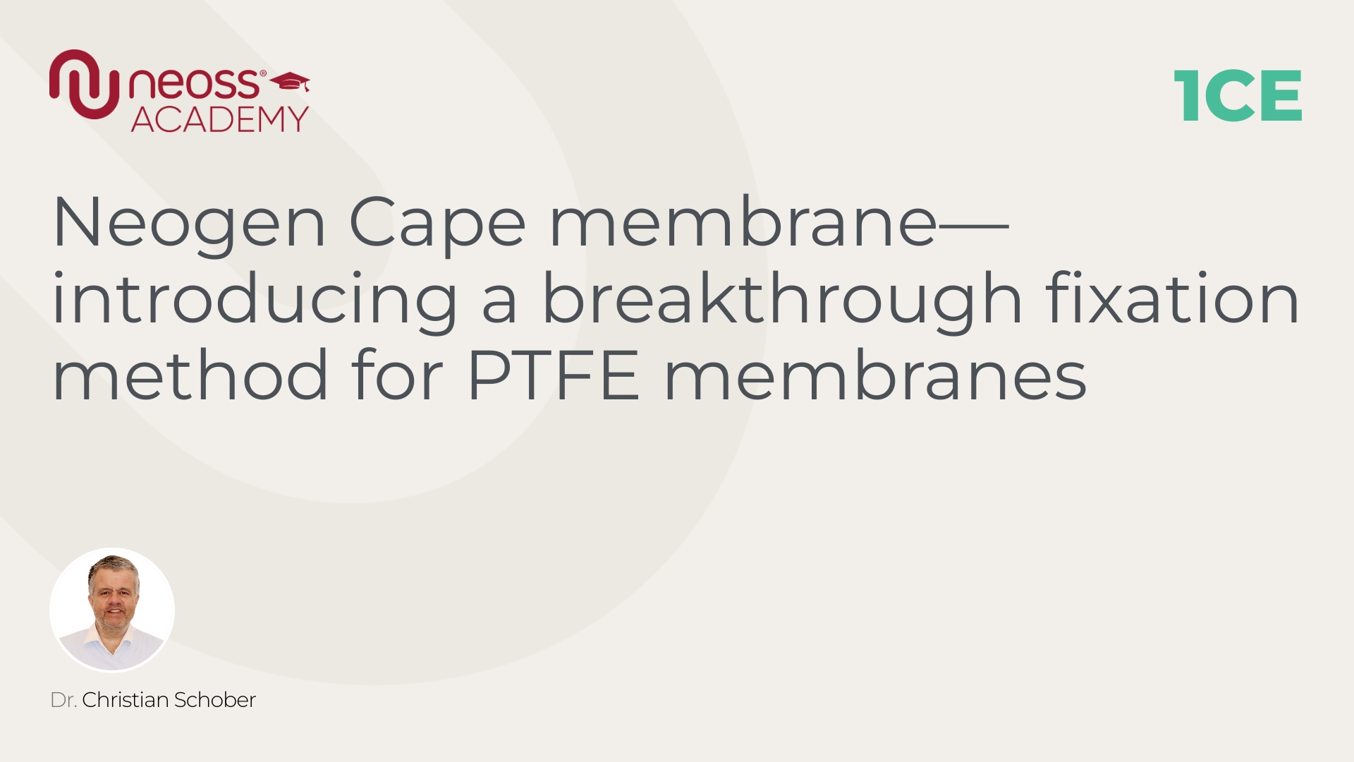 After several years of development with the brilliant Neoss engineering team and Dr Christian Schober, we are proud to present you our brand-new membrane fixation method in this webinar. With this ideal guided bone regeneration technique for buccal bone deficiencies in the aesthetic zone, you can produce a predictable bone growth. A small teaser: The key is to screw the membrane to a simultaneosly placed implant. This product was recently launched by the Neoss Group.