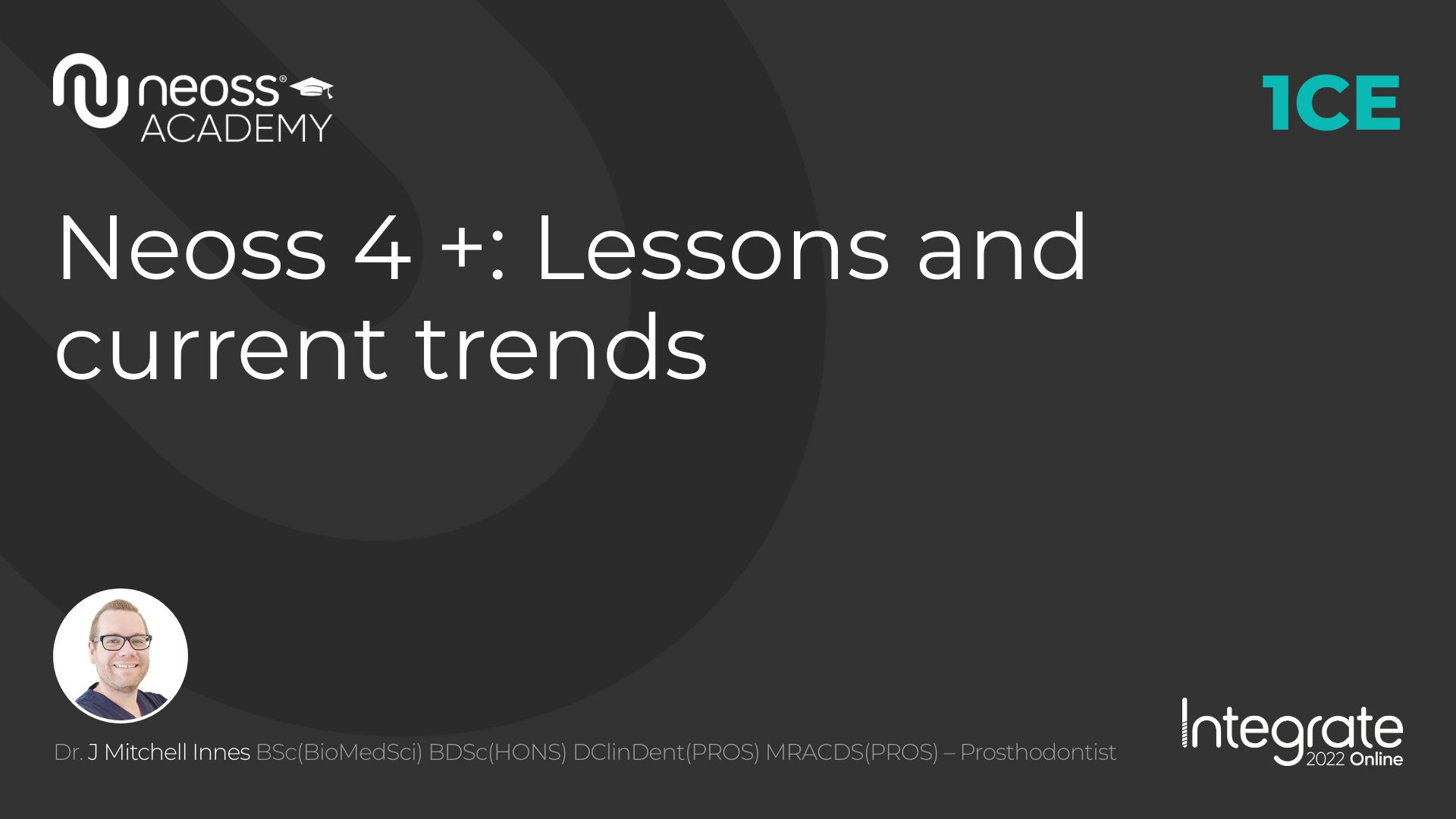 Neoss 4+ is a straightforward and predictable treatment modality. Born from a concept of reduced implants due to anatomic and financial constraints, the concepts of full arch implant dentistry has taught us many lessons, presents long term challenges for prosthetic success and patient satisfaction. The seminar presents learnings from the past 10 years and offers current thoughts by the speaker on the state of full arch implant dentistry and his recent movement to more predictable workflows surgically and prosthetically.